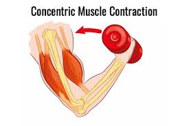 Okay…simply speaking, you use concentric muscle work whenever you engage your muscles and you flex the joint, generally. The muscle that gets ‘tense’ or shortens, is working Concentrically. Shortening while it is under tension. This happens with your calf muscles when you tip on our toes to stretch your arms up to the sky. When you lift your weight in your hand and bend your elbow, you are working your biceps Concentrically. Its shortening as you bend your elbow and bring the weight toward your face.