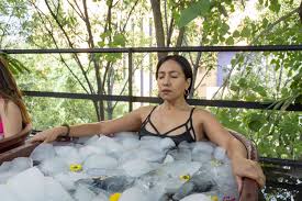 Ice aka (cryotherapy – not because you tend to cry when its applied to your warm skin), is very beneficial during the early phase of the treatment of an acute injury. Images similar to the person in the photo who sits comfortably in the ice bath from the waist down depicts full submersion of the lower limbs to reduce the build up of lactic acid and soreness following a strenuous exercises using the legs.Conditions such as recent sprains, strains, gout flare-ups, migraine headaches and fever…yes…often used in hospital setting to reduce fevers when placed in the armpits and groins, respond well to icing done safely. For headaches, an ice mask or a cool wrap over the forehead and eyes may help. Cool applications - 10-15min is usually adequate and should not extend past 20min. ese treatments, timing is everything. For recent injuries, cold is better as it constricts blood vessels and help to reduces the conduction & perception of the pain sensation. It shuts down swelling and limits bruising in this way.